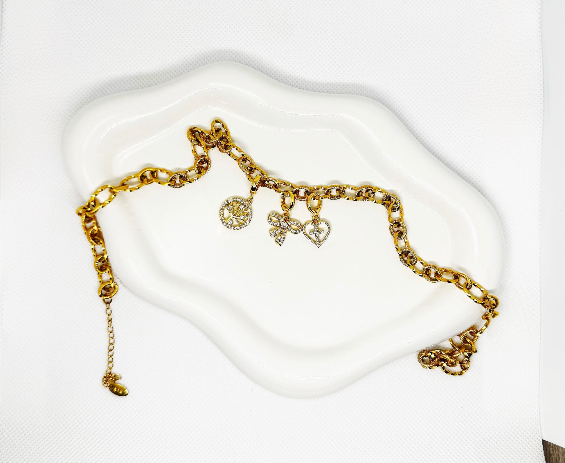 • Matériau : Chaine en acier inoxydable de haute qualité, offrant résistance et éclat durable, charms plaqué or.